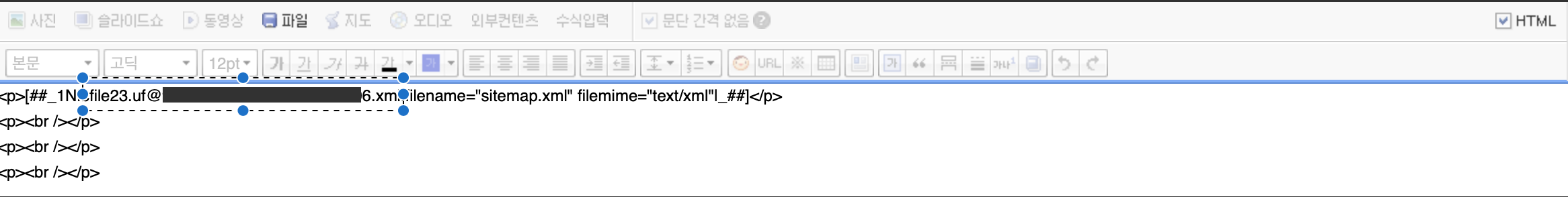 우측상단에 있는 "HTML" 체크 박스를 클릭하면,