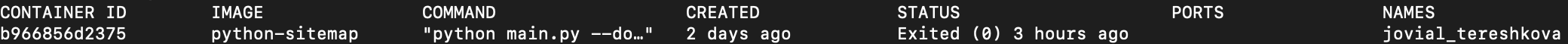 docker exec jovial_tereshkova python /home/python-sitemap/main.py --config config/config.json